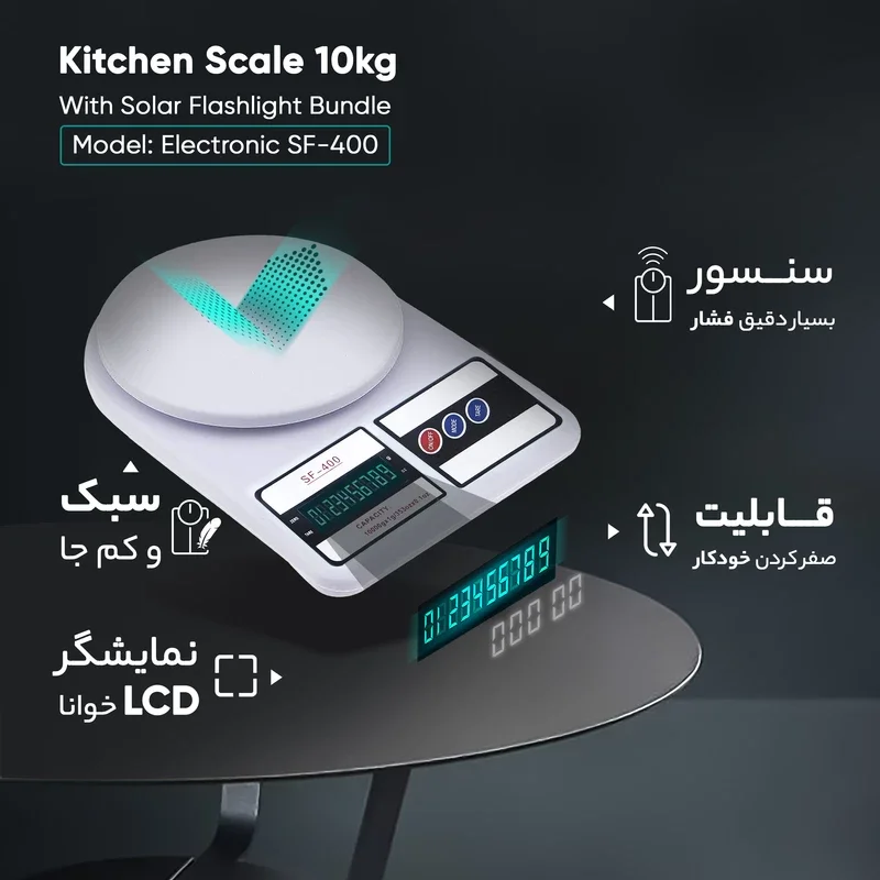 ترازوی آشپزخانه دیجیتالی الکترونیک یک وسیله کارآمد و مفید در هر آشپزخانهای است. این نوع ترازوی آشپزخانه، یک وسیله الکترونیکی است که برای اندازهگیری وزن مواد غذایی در آشپزخانه استفاده میشود. ترازوی آشپزخانه دیجیتالی الکترونیک مدل SF-400 وسیلهای با کیفیت و زیبا است که میتوان آن را تهیه کرد. این ترازو دارای سنسورهای الکترونیکی بوده که وزن مواد غذایی را با دقت بالا اندازهگیری میکند و سپس نتیجه را روی یک نمایشگر دیجیتالی نشان میدهد. این ترازوی آشپزخانه دیجیتالی دارای ویژگیهای متعددی همچون دقت بالا، قابلیت تنظیم واحد اندازهگیری، طراحی کوچک و قابل حمل، قابلیت توزین مواد مایع، قابلیت توقف خودکار و ... است. ترازوهای آشپزخانه دیجیتالی الکترونیک به دلیل دقت بالا و قابلیت تنظیم واحد اندازهگیری، برای آشپزی، تغذیه سالم و رژیمهای غذایی ورزشکاران بسیار مفید هستند. همچنین، طراحی کوچک و قابل حمل آنها، امکان استفاده در هر مکانی را فراهم میکند.ویژگی های ترازو آشپزخانه دیجیتالی الکترونیک مدل sf- 400 با ظرفیت ده کیلوگرمترازوی آشپزخانه دیجیتالی الکترونیک مدل SF-400 با ظرفیت ده کیلوگرم یک وسیله مفید و کارآمد برای اندازهگیری وزن مواد غذایی است. این مدل از ترازو دارای ویژگیهای متعددی است که مهمترین آنها با ظرفیت ده کیلوگرم این ترازو با قابلیت اندازهگیری وزن مواد غذایی به صورت جامد و مایع را دارد که معمولاً وزنهای گرم تا میلیگرم را به خوبی نشان میدهد. همچنین kitchen scale SF-400 دارای دقت بالایی است که به شما امکان میدهد وزن مواد را با دقت بالا اندازهگیری کنید و اندازه دقیق مواد مورد نظر خود را در صفحه نمایشگر آن مشاهده کنید. البته نباید قابلیت حمل آسان و طراحی در ابعاد کوچک این ترازو را نادیده گرفت چرا که این ویژگی سبب میشود تا در مکانهای مختلف بتوان از آن نهایت استفاده را کرد. البته، ترازوی SF-400 دارای قابلیت توقف خودکار است که در صورت عدم استفاده، به صورت خودکار خاموش میشود تا از مصرف باتری صرفه جویی کند.